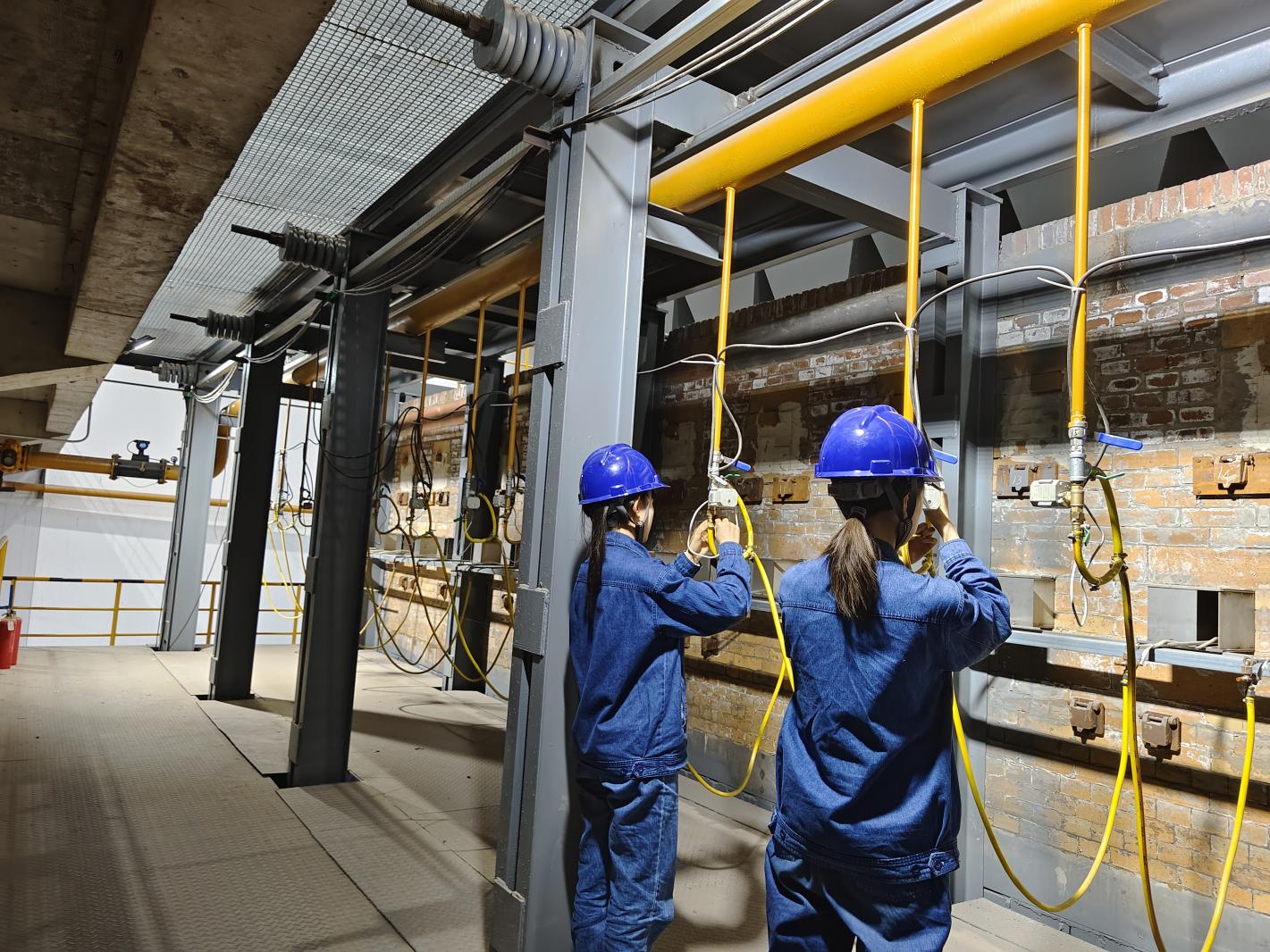 假日期间中州禄丰的中控室内依旧热火朝天,为避免出现炉内开裂现象,煅烧炉小组员工24小时现场值守对炉内温度进行监视。他们以严谨细心的态度对煅烧炉膨胀度进行检查,灵活把控炉内温度曲线,确保五一期间煅烧炉完好无损,为顺利出料创造着自己的价值。
